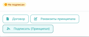 - Далее договор можно подписать по кнопке «Подписать (Принципал)»: