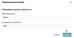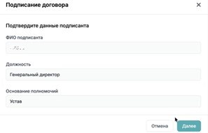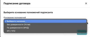 Перед подписанием необходимо выбрать основание полномочий подписанта: