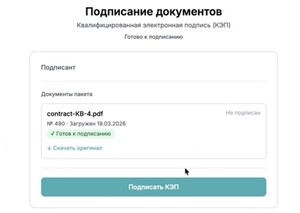 - После подтверждения данных кнопкой «Далее» документ меняет статус на «Готов к подписанию».