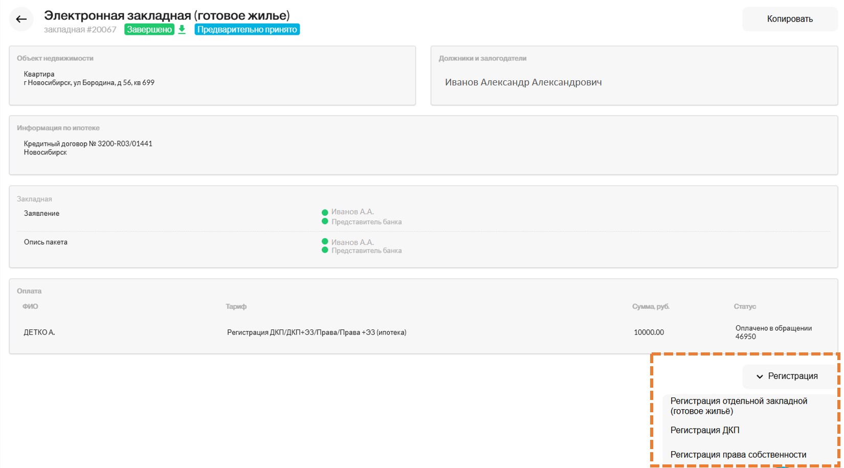 Создание черновика закладной